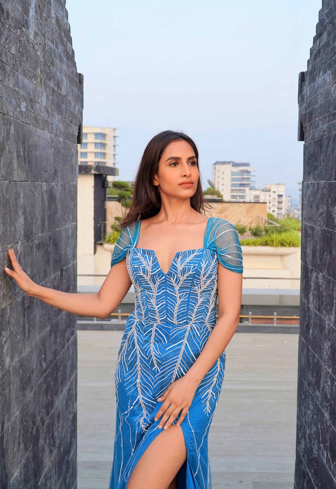 Akeeva Gown- Hand Embroidered with Crystals, Pearls, Glass Beads & Sequin