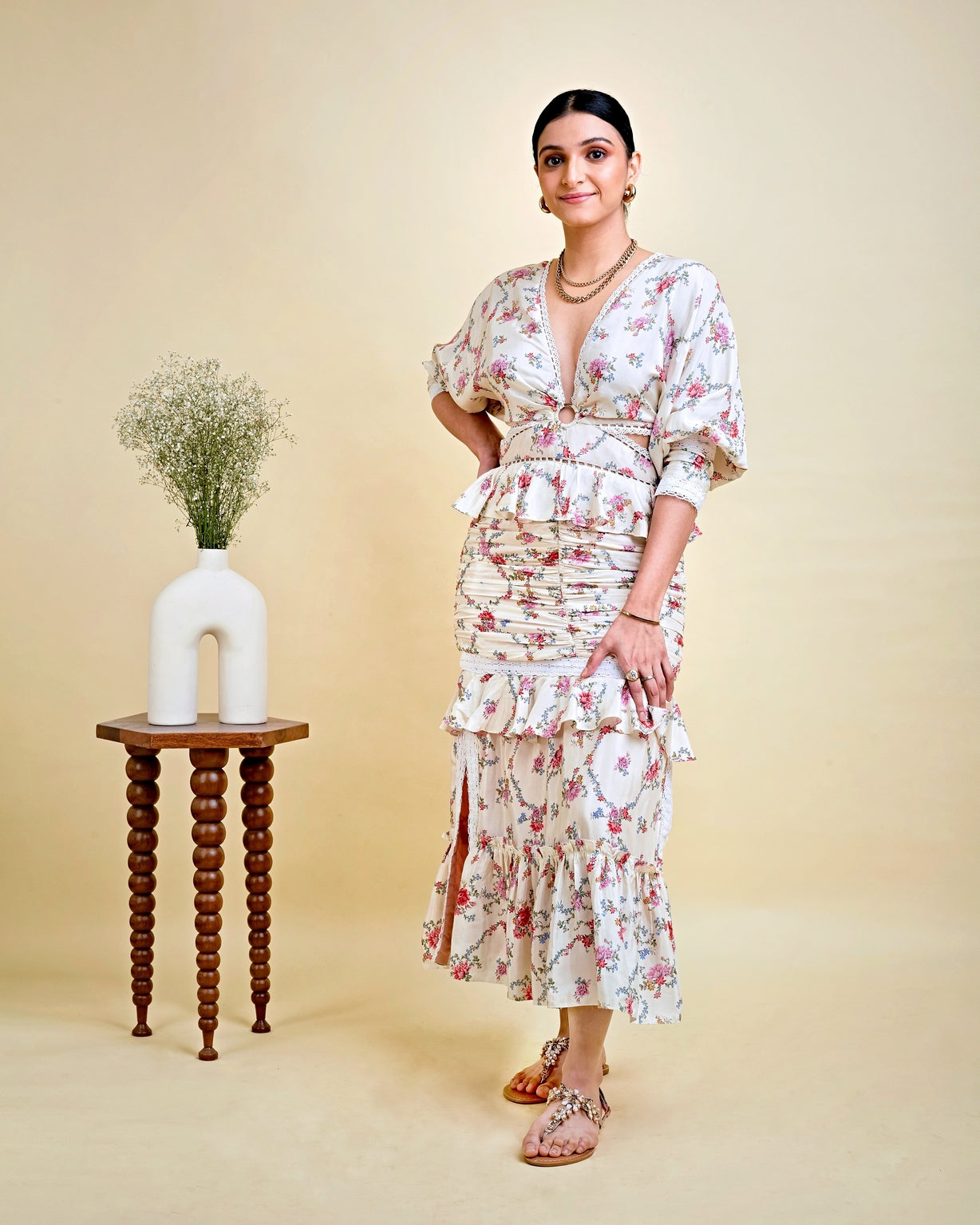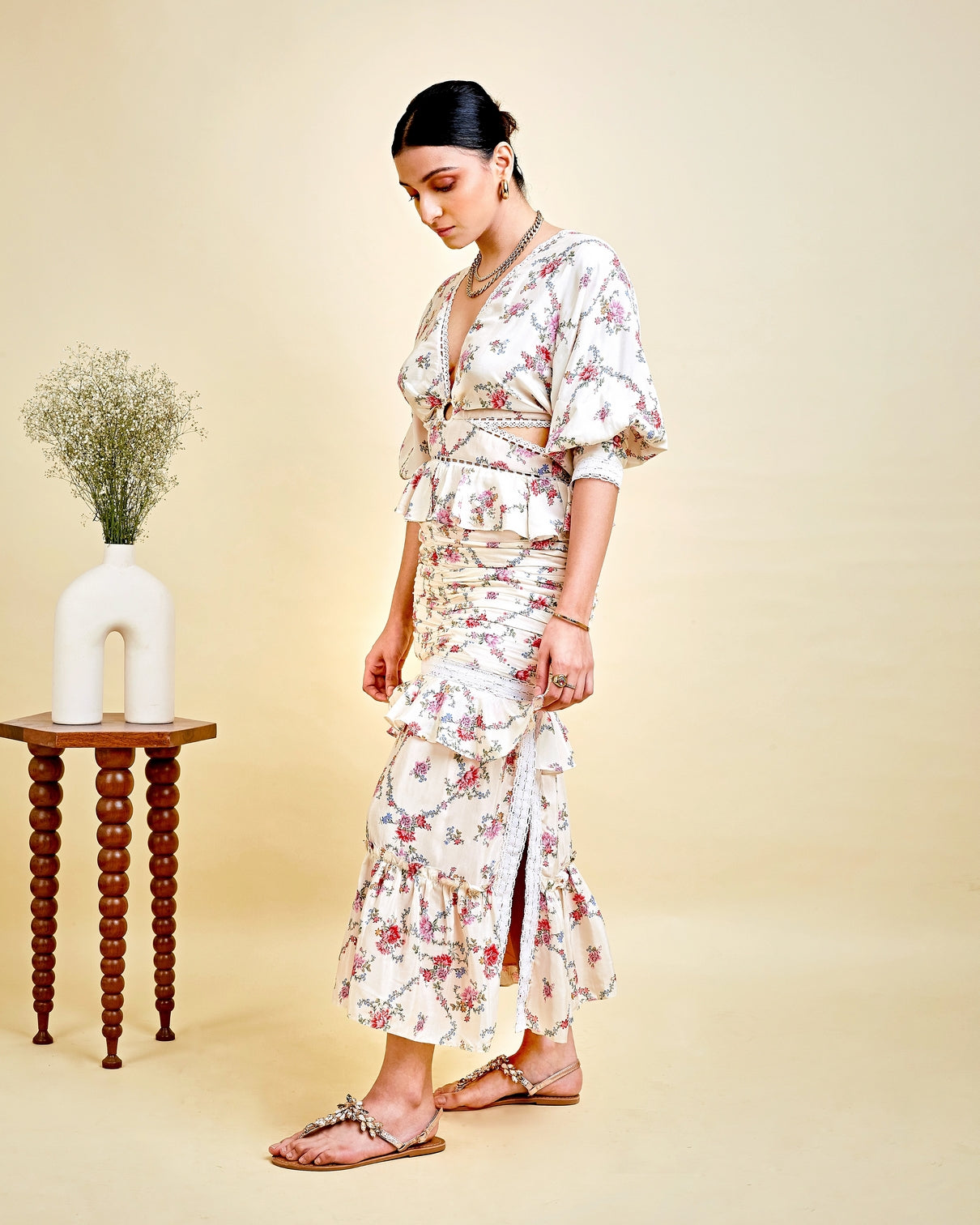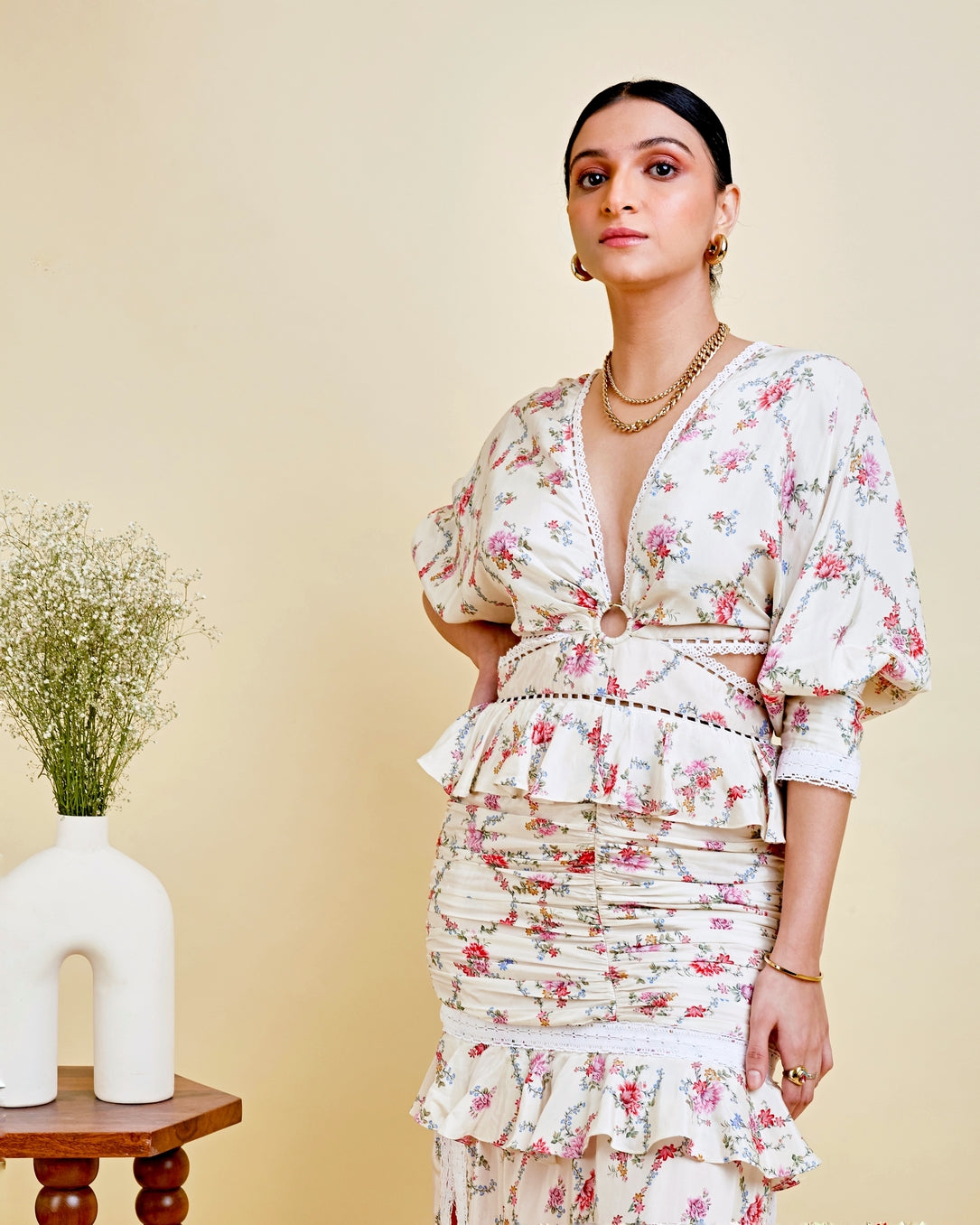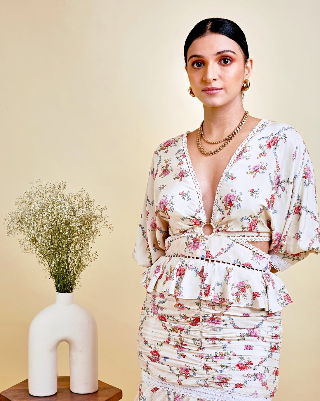 "Meet the Queen" peplum dress with side slits & delicate lace detailing