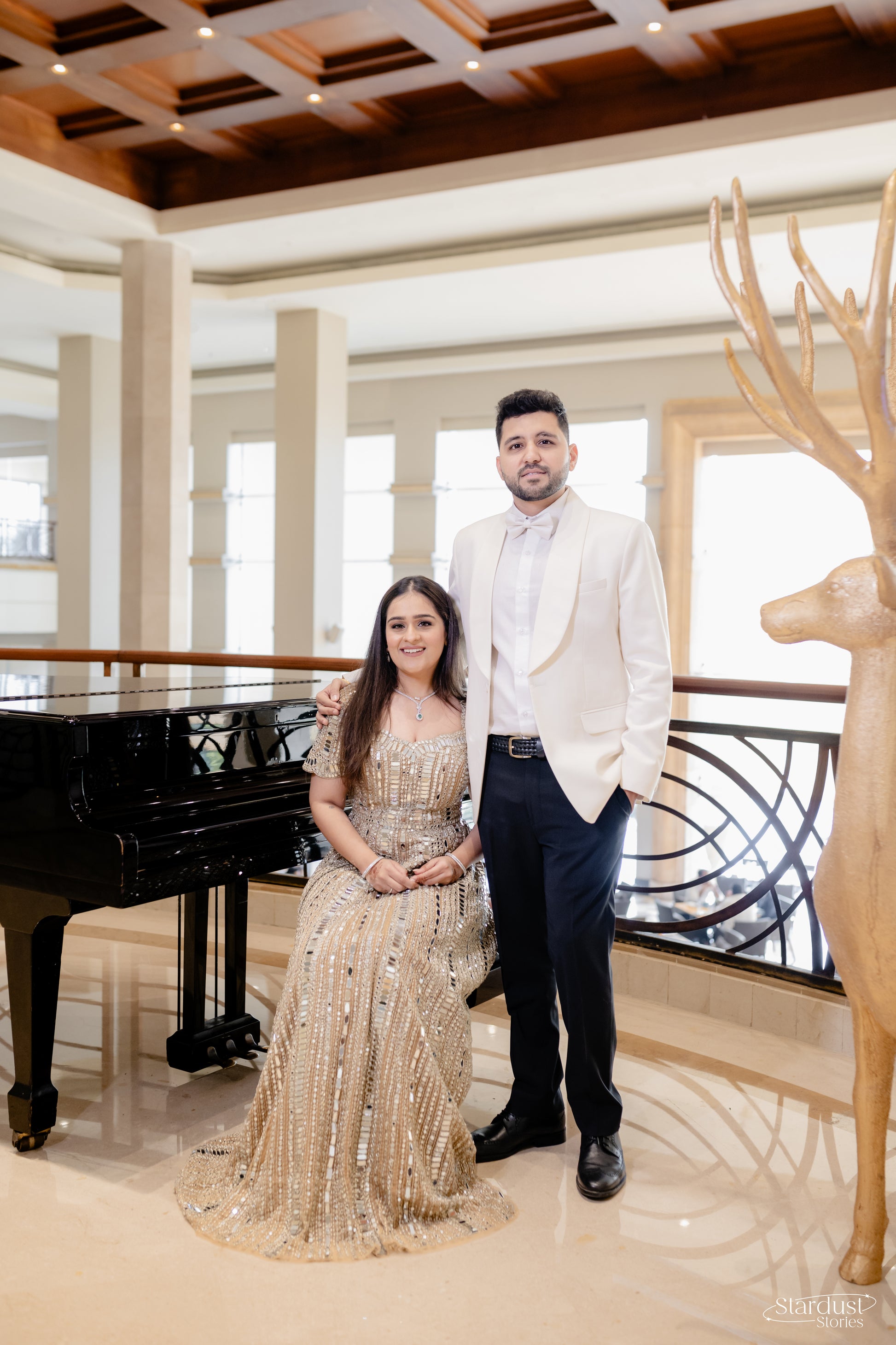 A gown crafted using more than 800 mirrors & zari embellished with glass beads for the perfect bride.